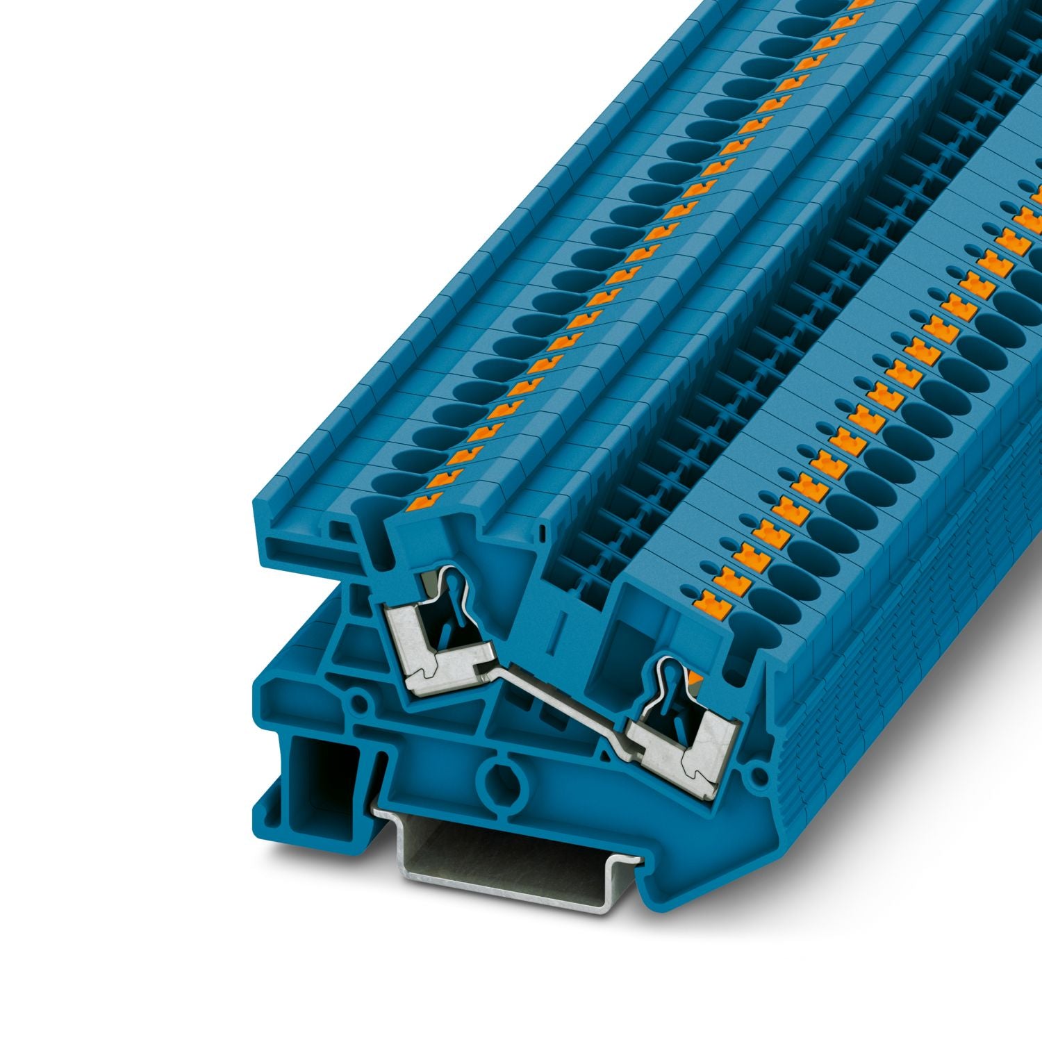 Installation terminal block, nom. voltage: 800 V, nominal current: 32 A, Push-in connection, 1 level, cross section: 0.2 mm2 - 6 mm2, mounting type: NS 35/7,5, NS 35/15, color: blue