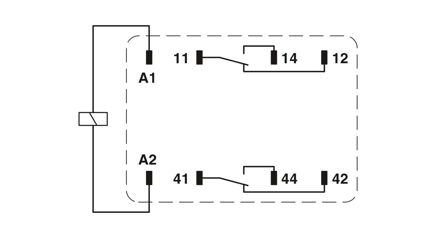 Plug-in industrial relay with power contacts, 2 changeover contacts, test button, status LED, freewheeling diode, mechanical switching position indicator, polarity: A1+, A2-, input voltage: 110 V DC