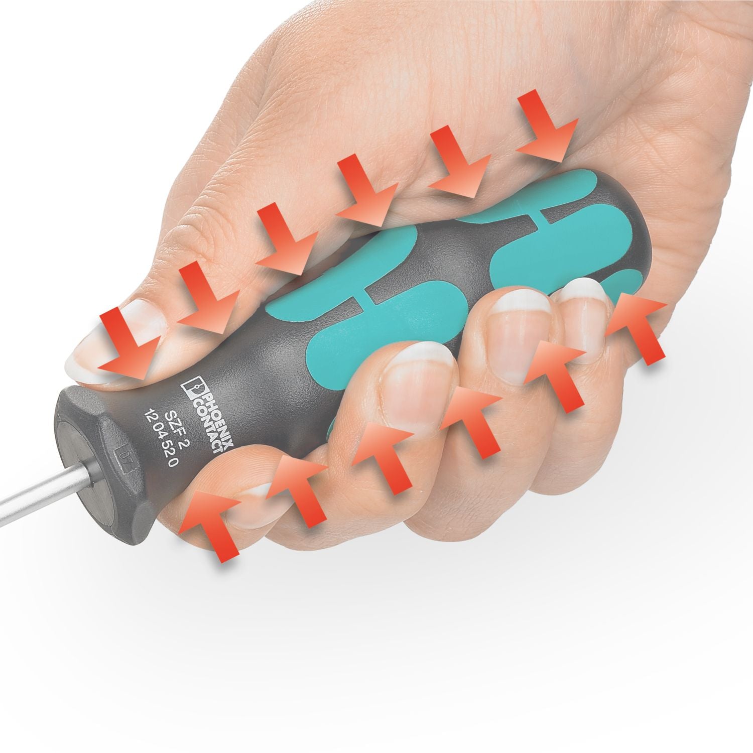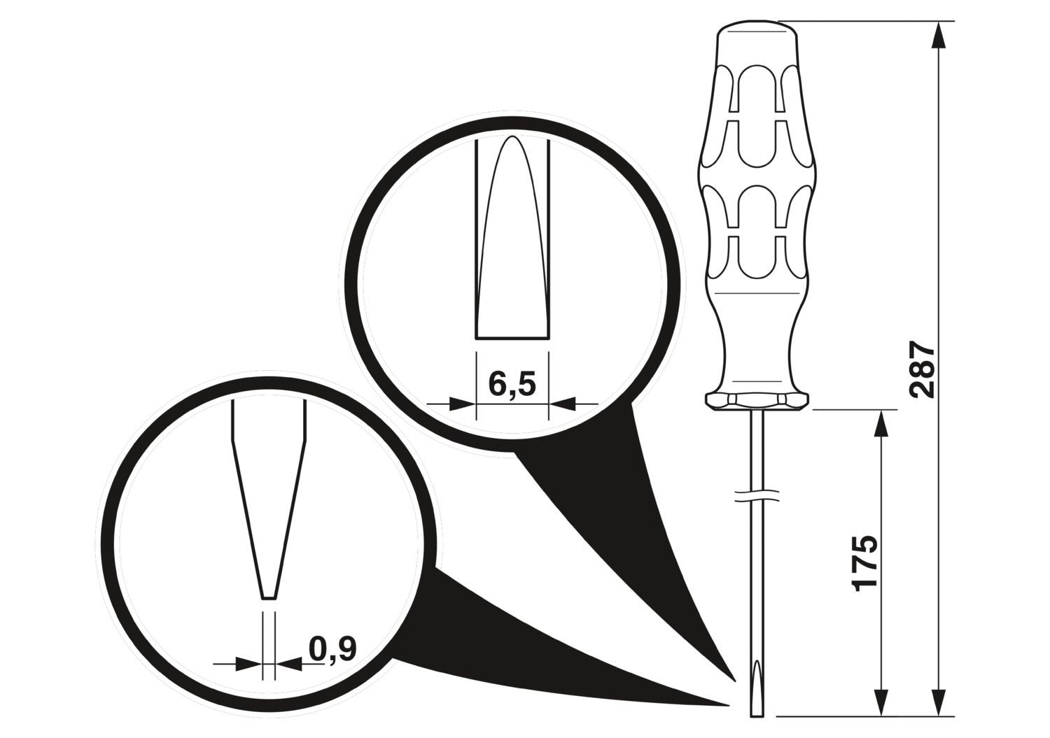 Screwdriver, slot-headed, graded, for test socket screws, size: 0.9 x 6.5 x 175 mm, 2-component grip, with non-slip grip