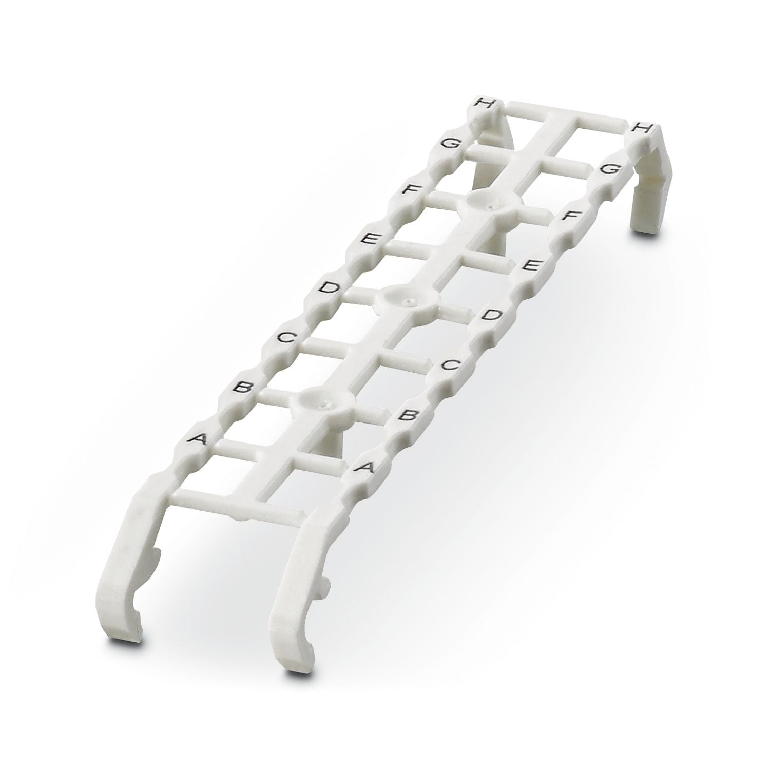 Marker for terminal blocks, Strip, white, labeled, mounting type: latching, for terminal block width: 8 mm, Number of individual labels: 2, text field height: 9.2 mm, text field width: 2.4 mm