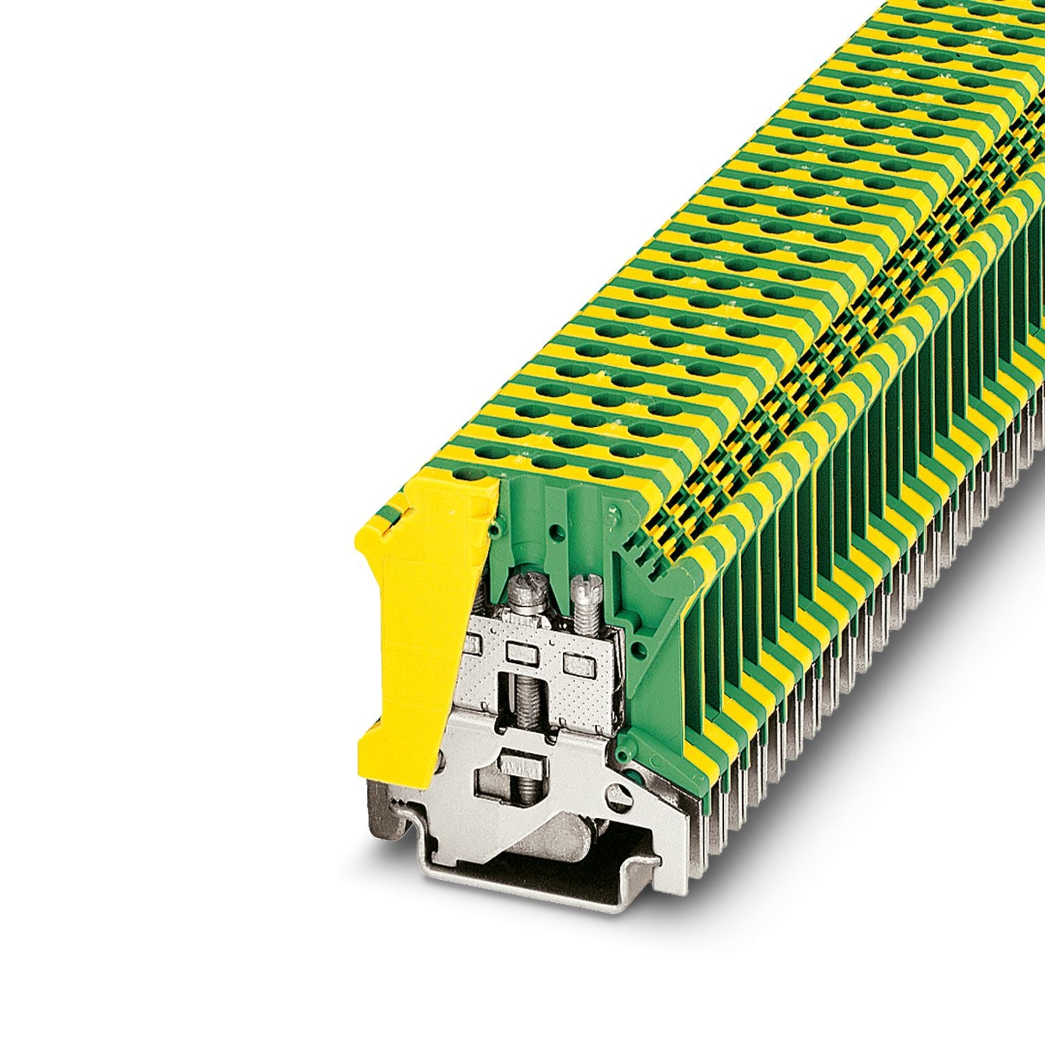 Protective conductor terminal block, When aligning with a feed-through terminal block with the same shape, an end cover must be interposed with insulation voltages of > 690 V, number of connections: 2, number of positions: 1, connection method: Screw connection, Rated cross section: 4 mm2, cross section: 0.2 mm2 - 4 mm2, mounting type: NS 35/7,5, NS 35/15, NS 32, color: green-yellow