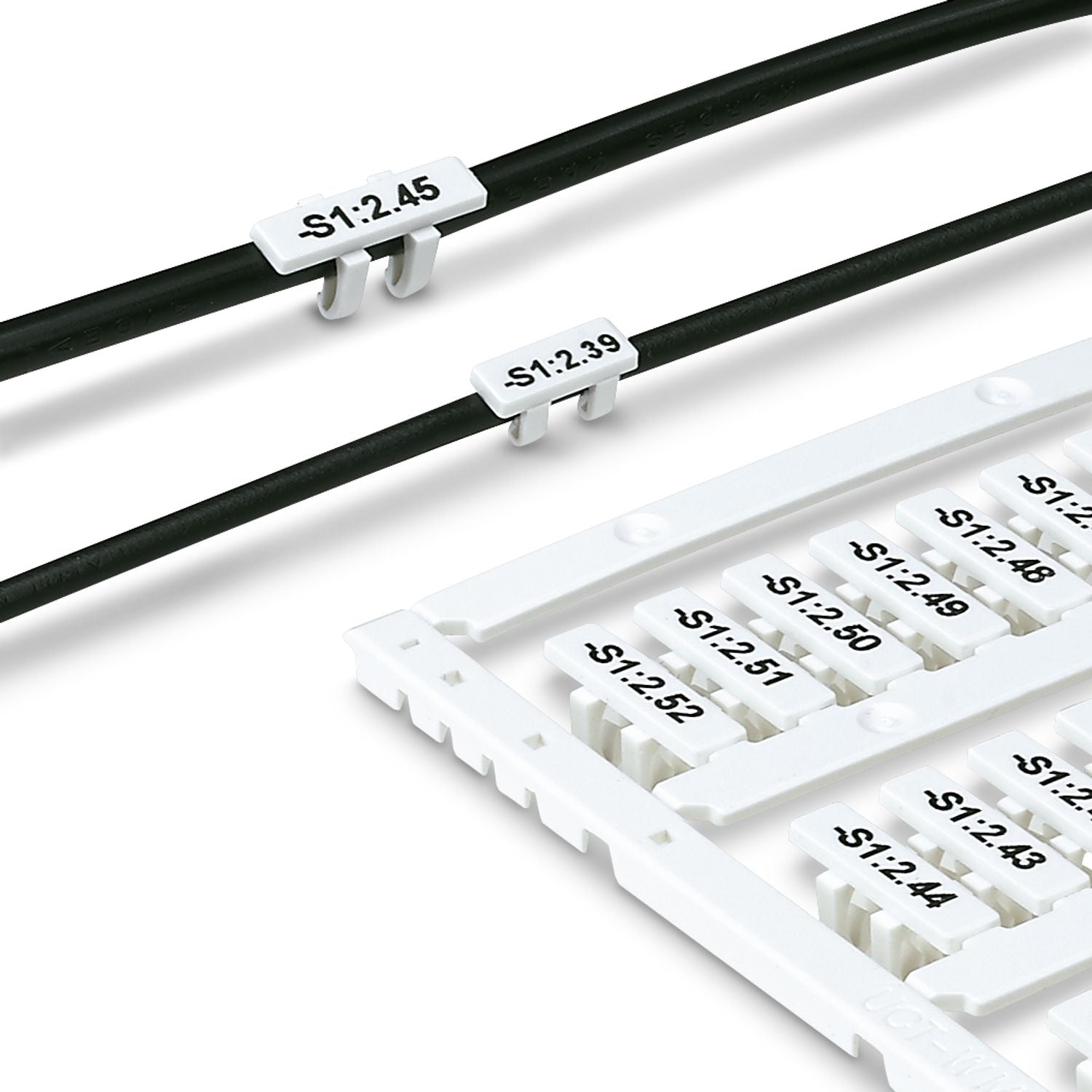 Wire marking, Sheet, white, unlabeled, can be labeled with: TOPMARK NEO, TOPMARK LASER, BLUEMARK ID COLOR, BLUEMARK ID, BLUEMARK CLED, THERMOMARK PRIME, THERMOMARK CARD 2.0, THERMOMARK CARD, BLUEMARK E.CARD, THERMOMARK PRIME 2.0, cable diameter range: 2.9 ... 3.5 mm, mounting type: clip on, Number of individual labels: 24, text field height: 4 mm, text field width: 23 mm