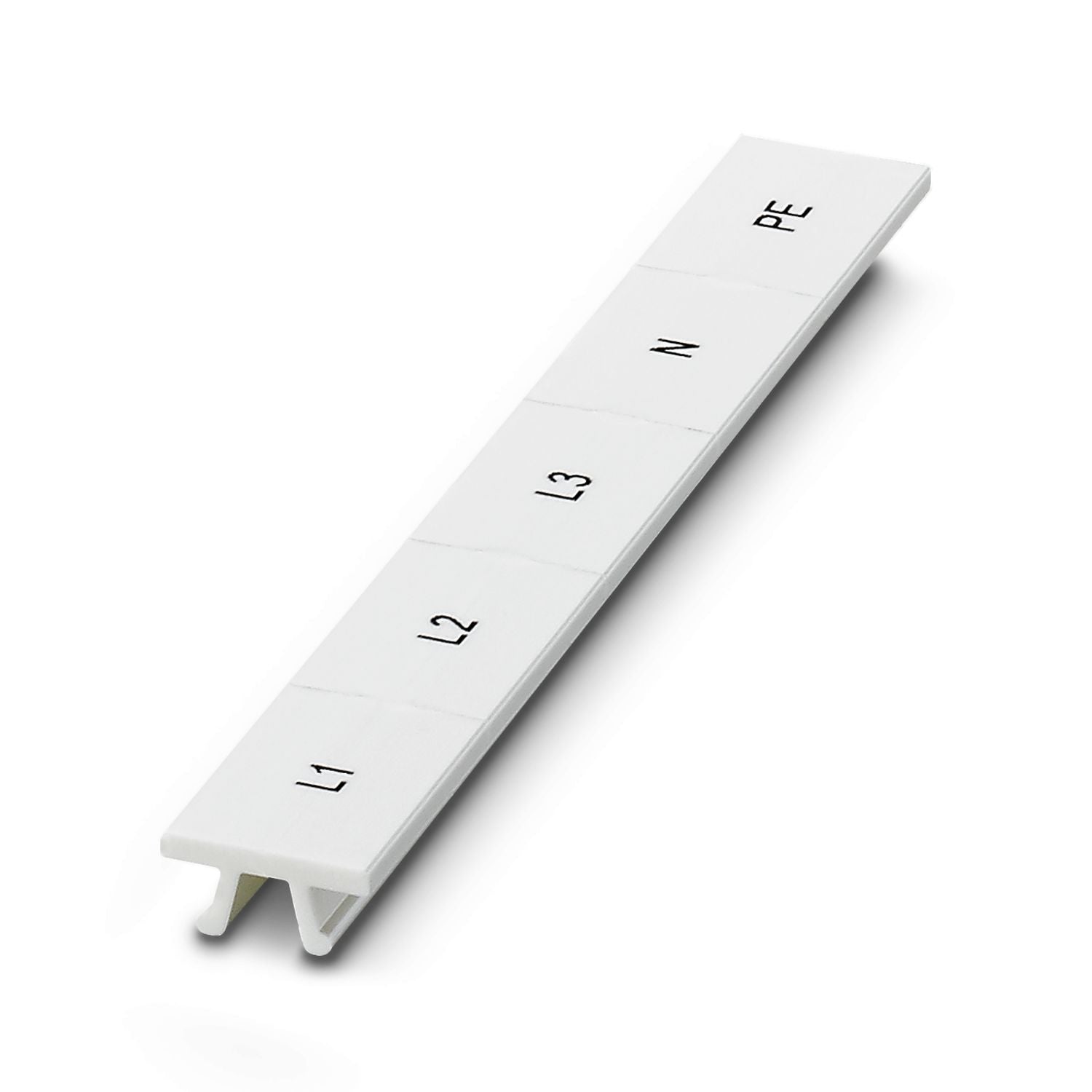 Zack marker strip, Strip, white, labeled, printed horizontally: L1, L2, L3, N, PE, mounting type: latching, for terminal block width: 16.3 mm, Number of individual labels: 5, text field height: 10.5 mm, text field width: 16.25 mm