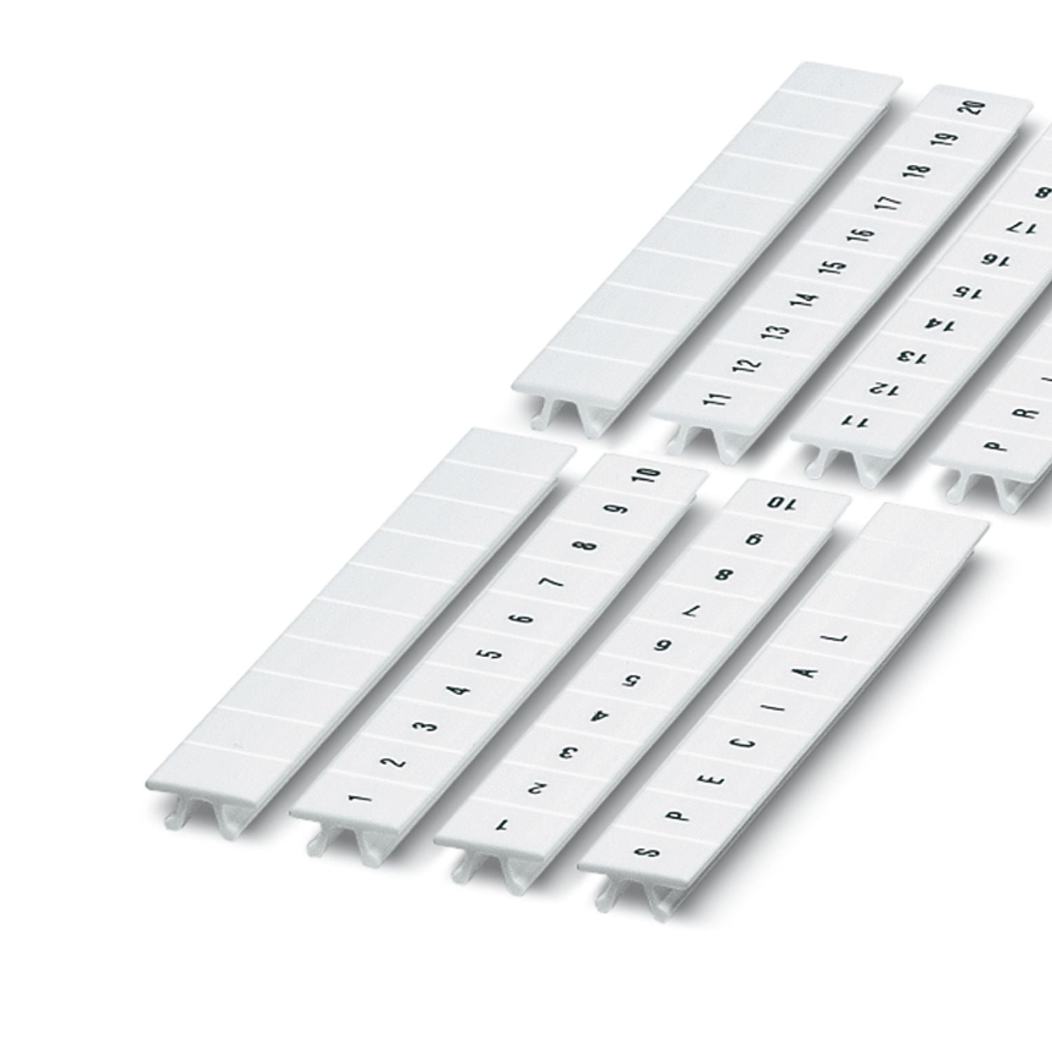 Zack marker strip, Strip, white, unlabeled, can be labeled with: PLOTMARK, CMS-P1-PLOTTER, mounting type: latching, for terminal block width: 6.2 mm, Number of individual labels: 10, text field height: 10.5 mm, text field width: 6.15 mm